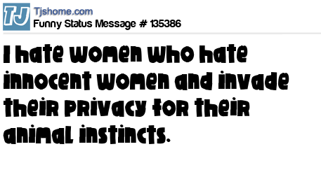 X I hate women who hate innocent women and invade their privacy for their animal instincts.