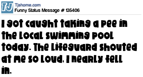 X says I got caught taking a pee in the local swimming pool today. The lifeguard shouted at me so loud, I nearly fell in.