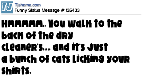 X Hmmmmm,, You walk to the back of the dry cleaner's,,,,, and it's just a bunch of cats licking your shirts.