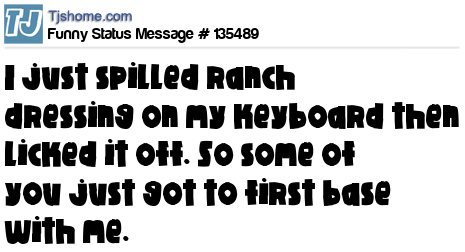 X I just spilled ranch dressing on my keyboard then licked it off. So some of you just got to first base with me.