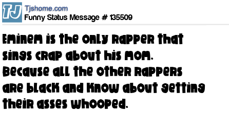 X says Eminem is the only rapper that sings crap about his mom. Because all the other rappers are black and know about getting their asses whooped.