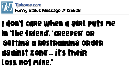 X is I don't care when a girl puts me in 'the friend', 'creeper' or 'getting a restraining order against zone'... it's their loss, not mine."