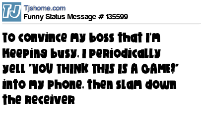 X says To convince my boss that I'm keeping busy, I periodically yell "YOU THINK THIS IS A GAME?" into my phone, then slam down the receiver