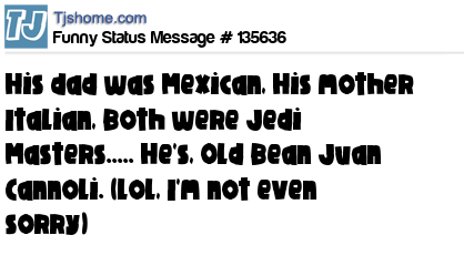 X His dad was Mexican, His mother Italian, Both were Jedi Masters..... He's, Old Bean Juan Cannoli. (lol, I'm not even sorry)