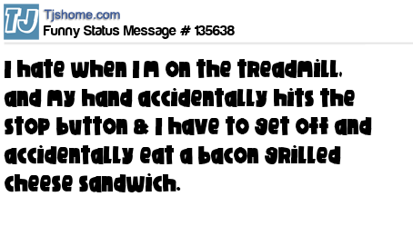 X I hate when I’m on the treadmill, and my hand accidentally hits the stop button & I have to get off and accidentally eat a bacon grilled cheese sandwich.