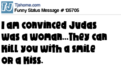 X says I am convinced Judas was a woman...They can kill you with a smile or a kiss.