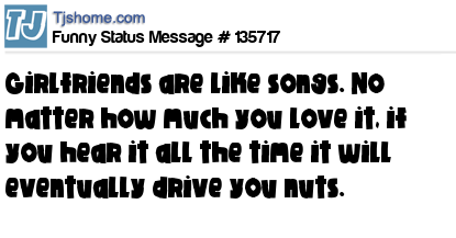 X says Girlfriends are like songs. No matter how much you love it, if you hear it all the time it will eventually drive you nuts.