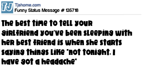 X says The best time to tell your girlfriend you've been sleeping with her best friend is when she starts saying things like "not tonight, I have got a headache"