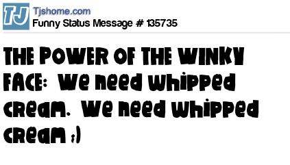 X says THE POWER OF THE WINKY FACE: We need whipped cream. We need whipped cream ;)