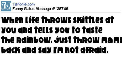 X says when life throws skittles at you and tells you to taste the rainbow, just throw m&ms back and say I'm not afraid.