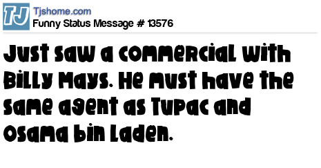 X Just saw a commercial with Billy Mays. He must have the same agent as Tupac and Osama bin laden.