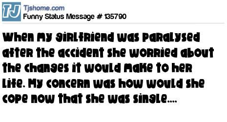 X When my girlfriend was paralysed after the accident she worried about the changes it would make to her life. My concern was how would she cope now that she was single....