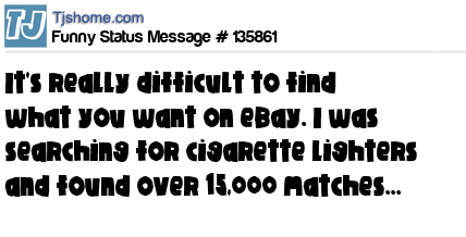 X It's really difficult to find what you want on eBay. I was searching for cigarette lighters and found over 15,000 matches...