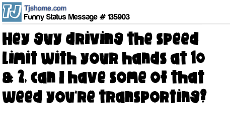 X says Hey guy driving the speed limit with your hands at 10 & 2, can I have some of that weed you're transporting?