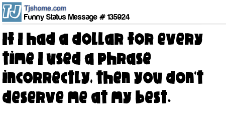 X says If I had a dollar for every time I used a phrase incorrectly, then you don't deserve me at my best.