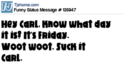 X says Hey Carl, know what day it is? It's Friday. Woot woot. Suck it Carl.