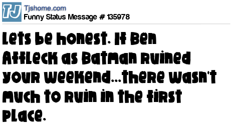 X Lets be honest. If Ben Affleck as Batman ruined your weekend...there wasn't much to ruin in the first place.