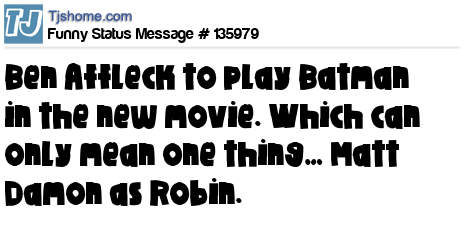 X Ben Affleck to play Batman in the new movie. Which can only mean one thing… Matt Damon as Robin.