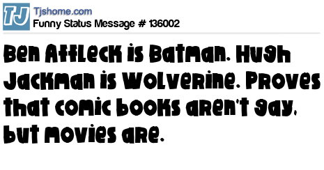 X says Ben Affleck is Batman. Hugh Jackman is Wolverine. Proves that comic books aren't gay, but movies are.