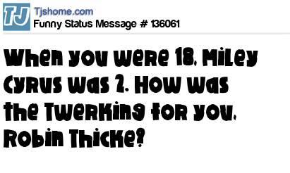 X says When you were 18, Miley Cyrus was 2. How was the Twerking for you, Robin Thicke?