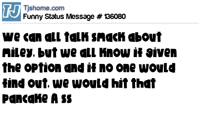 X says we can all talk smack about miley, but we all know if given the option and if no one would find out, we would hit that pancake A ss