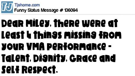 X says Dear Miley, there were at least 4 things missing from your VMA performance - Talent, Dignity, Grace and Self Respect.