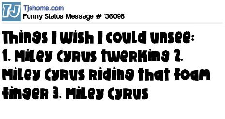 X says Things I wish I could unsee: 1. Miley Cyrus twerking 2. Miley Cyrus riding that foam finger 3. Miley Cyrus