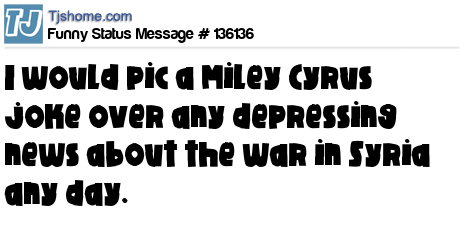 X says I would pic a Miley Cyrus joke over any depressing news about the war in Syria any day.