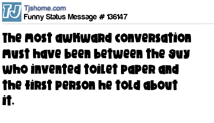 X says The most awkward conversation must have been between the guy who invented toilet paper and the first person he told about it.