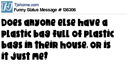 - # 141580 Does anybody else have a plastic bag full of other plastic bags in their house or is it just me???