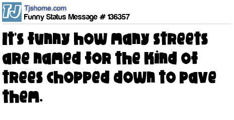X It's funny how many streets are named for the kind of trees chopped down to pave them.