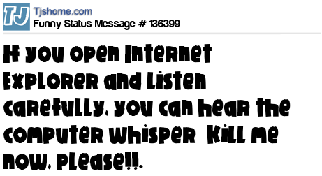 X says If you open Internet Explorer and listen carefully, you can hear the computer whisper “Kill me now, please!!.”