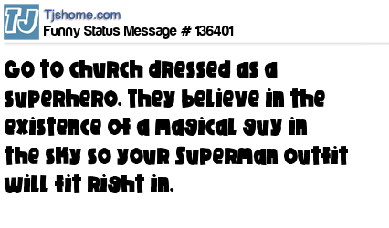 X says Go to church dressed as a superhero. They believe in the existence of a magical guy in the sky so your Superman outfit will fit right in.