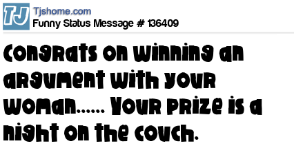 X Congrats on winning an argument with your woman...... Your prize is a night on the couch.