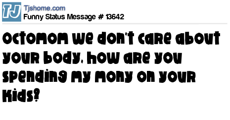 X says Octomom we don't care about your body, how are you spending my mony on your kids?