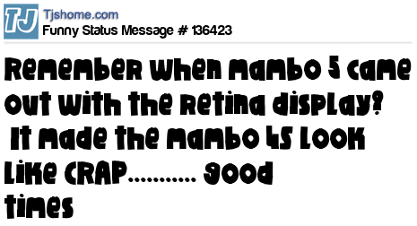 X Remember when mambo 5 came out with the retina display? It made the mambo 4S look like CRAP........... good times