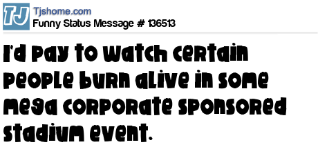 X says I'd pay to watch certain people burn alive in some mega corporate sponsored stadium event.