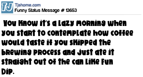 X is You know it's a lazy morning when you start to contemplate how coffee would taste if you skipped the brewing process and just ate it straight out of the can like Fun Dip.