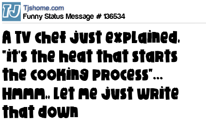 X A TV chef just explained, "it's the heat that starts the cooking process"... Hmmm,, Let me just write that down