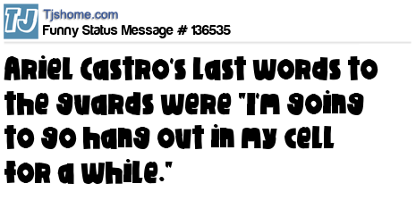 - # 136527 Ariel Castro found dead in cell. Hell is burning a bit brighter today. Its the feel good story of the day...