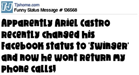 X says Apparently Ariel Castro recently changed his Facebook status to 'Swinger' and now he wont return my phone calls!