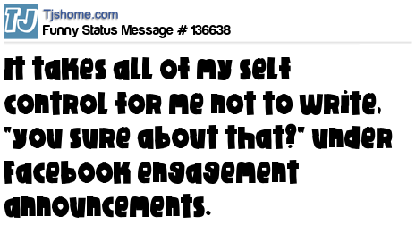 X says It takes all of my self control for me not to write, "you sure about that?" under Facebook engagement announcements.