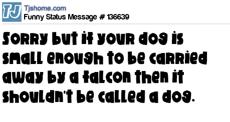 X says Sorry but if your dog is small enough to be carried away by a falcon then it shouldn't be called a dog.