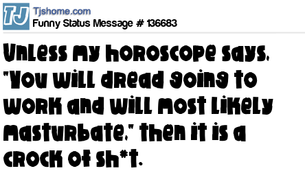 X says Unless my horoscope says, "You will dread going to work and will most likely masturbate," then it is a crock of sh*t.