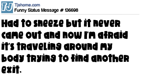 X says Had to sneeze but it never came out and now I'm afraid it's traveling around my body trying to find another exit.