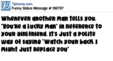 X says Whenever another man tells you, "You're a lucky man" in reference to your girlfriend. It's just a polite way of saying "Watch your back, I might just replace you"