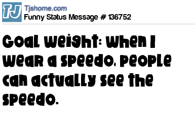 X says Goal weight: when I wear a speedo, people can actually see the speedo.