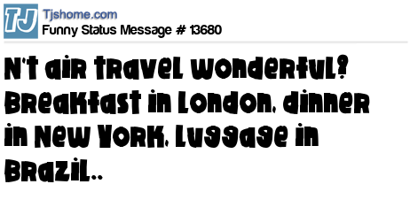 X n't air travel wonderful? Breakfast in London, dinner in New York, luggage in Brazil..
