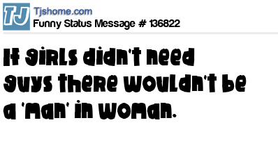 X says If girls didn't need guys there wouldn't be a 'man' in woman.
