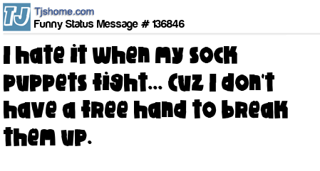 X I hate it when my sock puppets fight... Cuz I don't have a free hand to break them up.